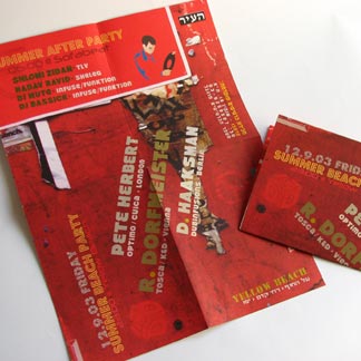 | «« ימין עליון: הזמנה למסיבה, סחלב רקורדס, אמצעי עליון: הזמנה לאירוע, שוקי- שוק לילדים, שמאל עליון: פלייר פרסומי לשירות של חברת סקרין פיקס, ימין אמצעי: פלייר פרסומי למטפל ברפואה סינית, אמצעי: הזמנה לחתונה, שמאלי אמצעי: פליירים לפרסום חוגים במרכז שחור לבן, ימין תחתון: פליירים לפרסום הופעה של להקת בנגורה, אמצעי תחתון: הזמנה לשוק מעצבי העיר בתל אביב, שמאל תחתון: פלייר לפרסום תיאטרון מפגשים |